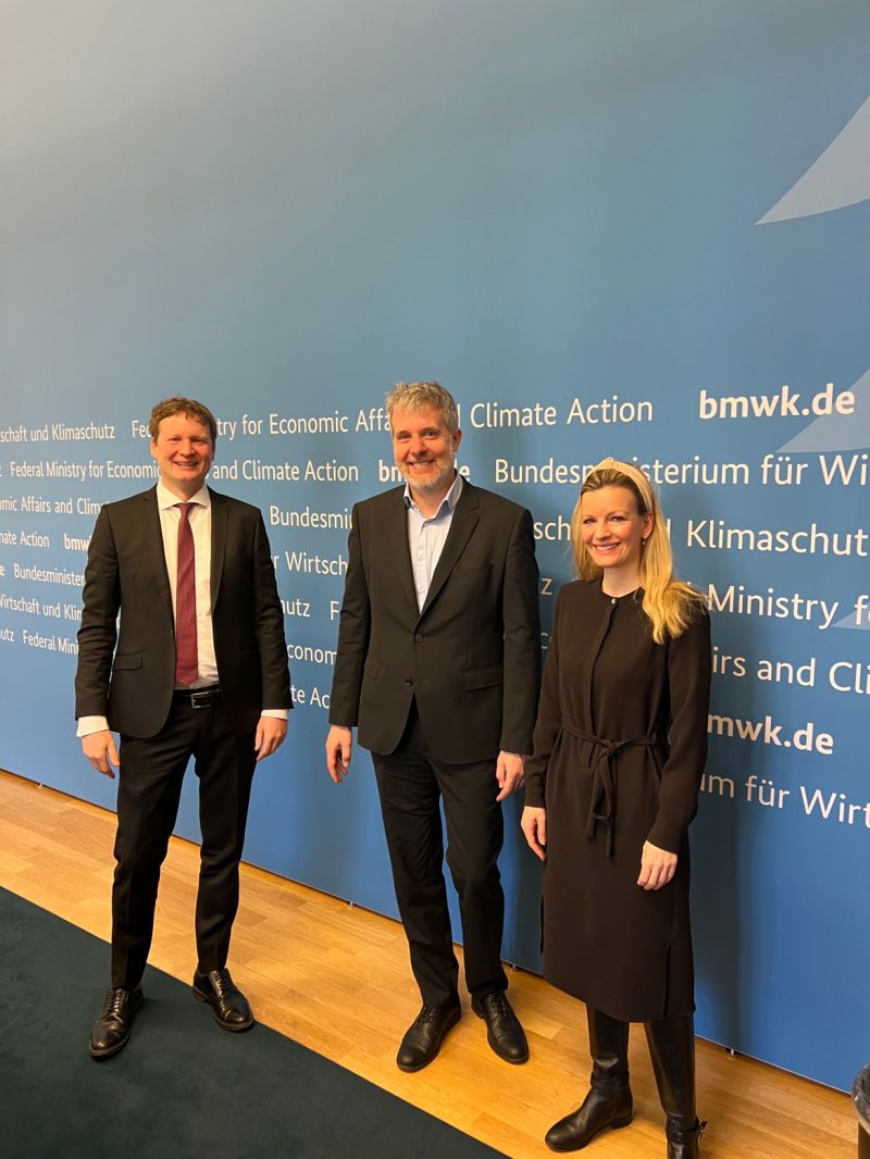 Foto: Sebastian Frevel, Geschäftsführender Gesellschafter der von Beust Coll. Beratungsgesellschaft mbH & Co. KG, Tessa Rodewaldt, Geschäftsführerin der Maritimen Plattform, zu Besuch beim Koordinator der Bundesregierung für maritime Wirtschaft und Tourismus, Dieter Janecek