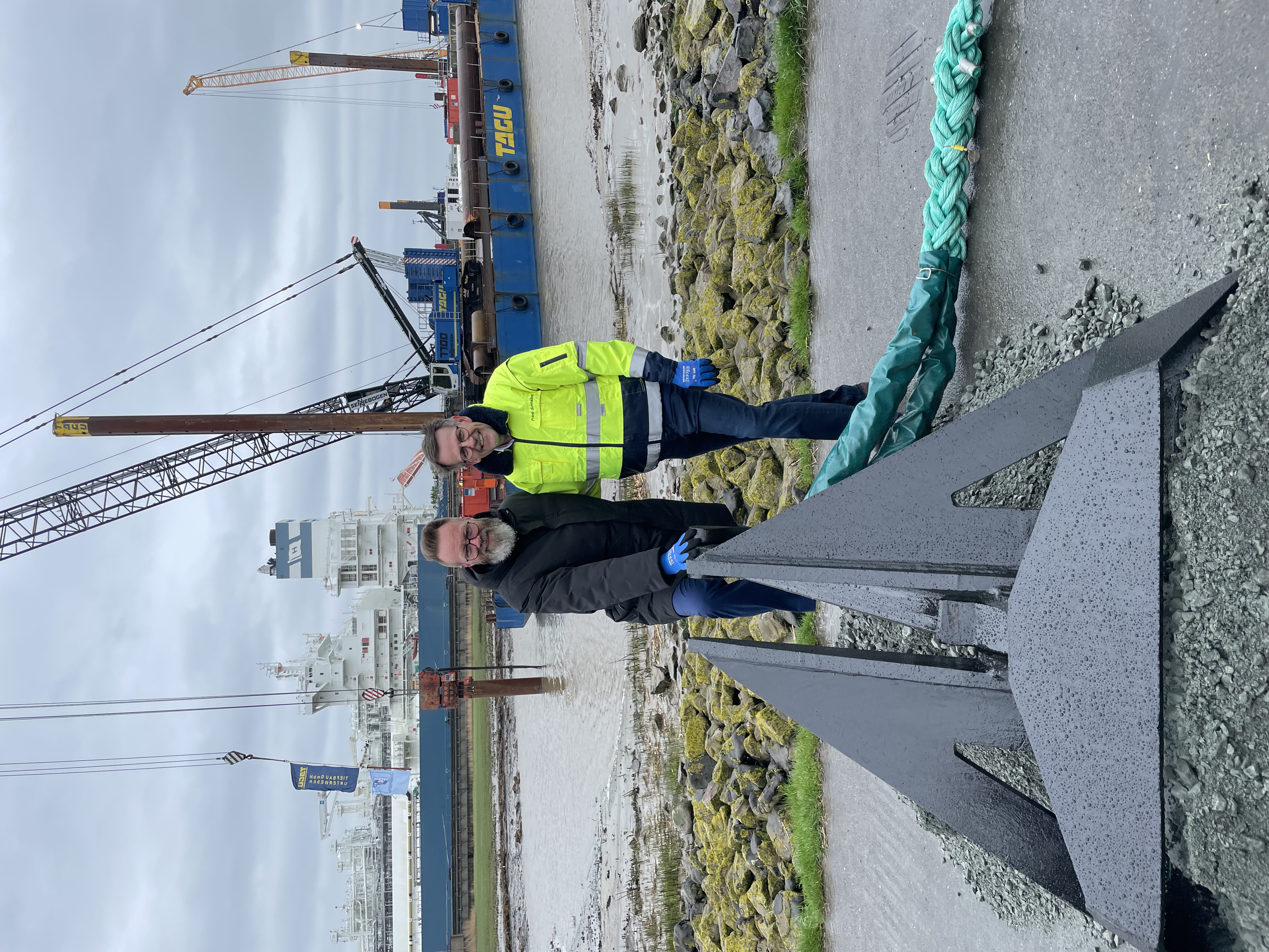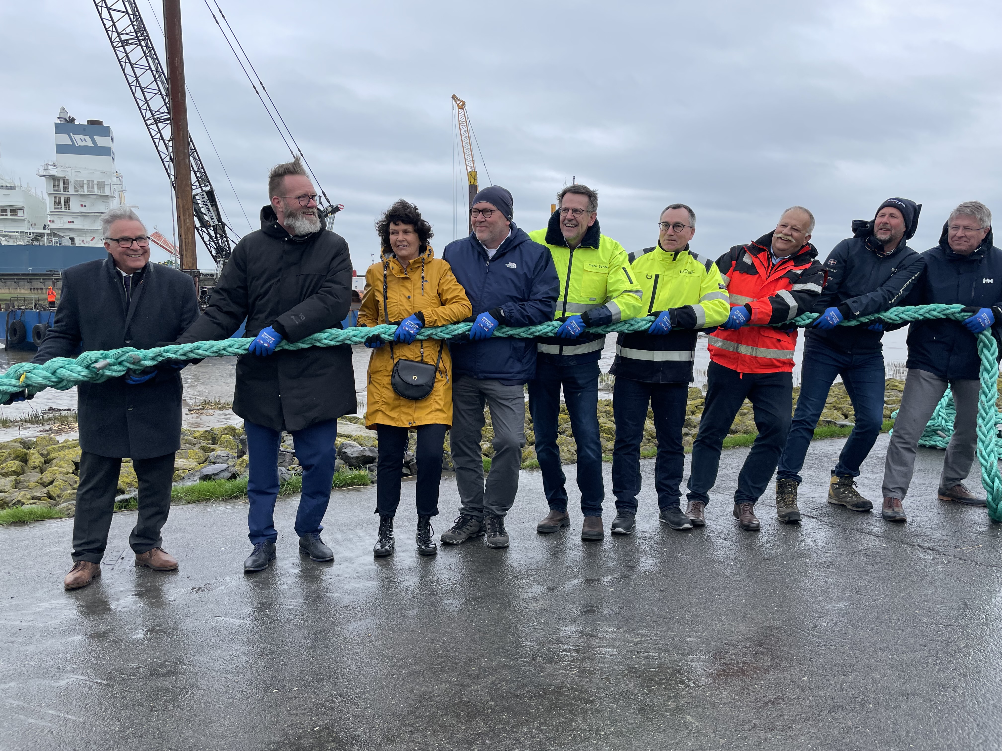 Geschäftsführer Frank Schnabel hebt ebenfalls die gute Zusammenarbeit mit den Behörden hervor und bedankt sich bei seinen Mitarbeiterinnen und Mitarbeitern, dem Projektteam und allen Beteiligten für den unermüdlichen Einsatz und die ausdauernde Leistungsbereitschaft, wodurch jeder einzelne maßgeblich zum Projekterfolg beigetragen hat. „Der Bau der Jetty ist ein Infrastrukturprojekt von nationaler Bedeutung. Es erfordert eine enge Zusammenarbeit aller Beteiligten und kann nur realisiert werden, wenn Politik, Verwaltung und Wirtschaft an einem Strang ziehen“, betont Schnabel.
